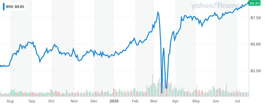 2020年夏のボーナスは、シンプルに債券ETFであるバンガートETF BND、一点買いで追加購入をしました。 比較的値動きの少ない安定感のあるバンガードETF BNDでありますが、下記のチャートをみても分かる通り、コロナショック後もじわじわと上昇し、最高値を更新している状況、米国のゼロ金利も当面続くであろうという状況で、追加購入すべきなのか、少々迷いました。